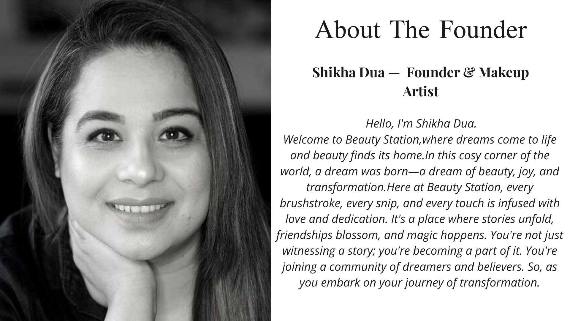"In a world where you can be anything, Be bold. Be fearless. And above all, be you." SALON MAKEUP STUDIO Academy Contact Us Please enable JavaScript in your browser to complete this form.Please enable JavaScript in your browser to complete this form. or Email Name Name *FirstLastEmail *Comment or MessageSubmit Instagram Holi colours may fade… but the damage to your skin She stopped waiting for a special occasion… and be Choosing yourself is not selfish — it’s self-respe This gentle scalp therapy is more than relaxing — Help your partner relax with these easy and simple Struggling with constant headache because of work. ✨ Healthy hair starts with a healthy scalp! ✨ Exp From textured to touchable silky smooth skin. We Want peace in your life? Start with booking her a No partner? No problem. ❤️ This Valentine’s, I’m c Comment ‘papaya’ for details, Because flowers fade Comment ‘Organic’ for this treatment. This Valenti Struggling with hair fall, dandruff, itchy scalp, Flowers fade, chocolates finish… But self-care sta Sinus relief massage @beautystation_newdelhi Suff Self-care that feels like magic ✨ Because sometime Comment ‘details’ for this treatment ✨ How do you The 22-Step Korean Scalp Spa your hair is silently Ozone Therapy is a powerful part of our organic ha Your body holds stress long before your mind admit Load More Follow on Instagram